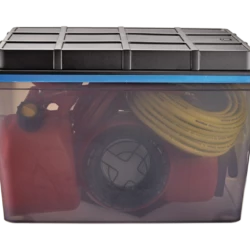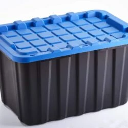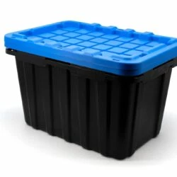 Mastercraft Heavy Duty Tilt & Tow Storage Box With Wheels And Latched Lid, 95-L, Black/Blue