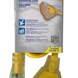 Mastercraft 15-ft 12/3 Outdoor Extension Cord With 3 Grounded Outlets And Lighted End, Yellow