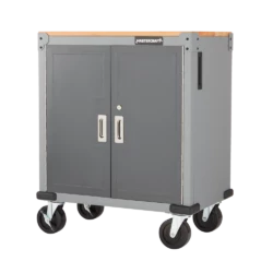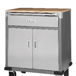 Mastercraft 2-Door Wooden Top Base Cabinet With Wheels, Grey Series, 34.5 X 28 X 18-in
