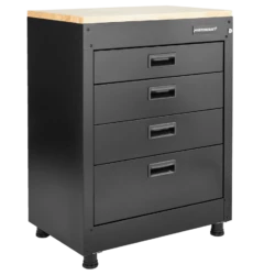 Mastercraft 4-Drawer Wooden Top Base Storage Cabinet, Black Series, 28 X 18 X 37-in