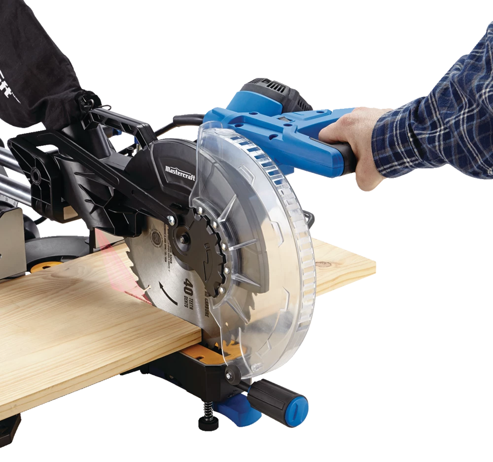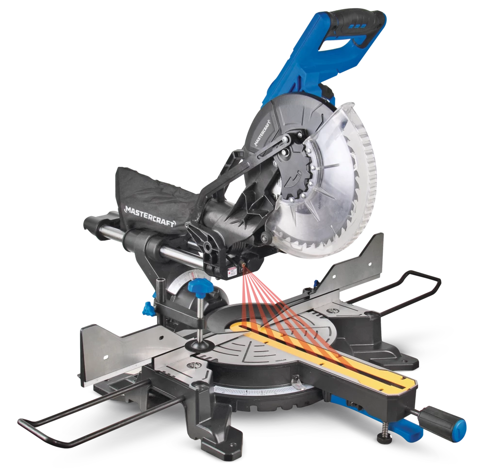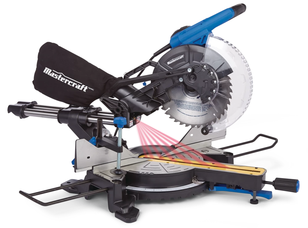 - Mastercraft Mitre Saw features dual-bevelling: 0-45° left and right
