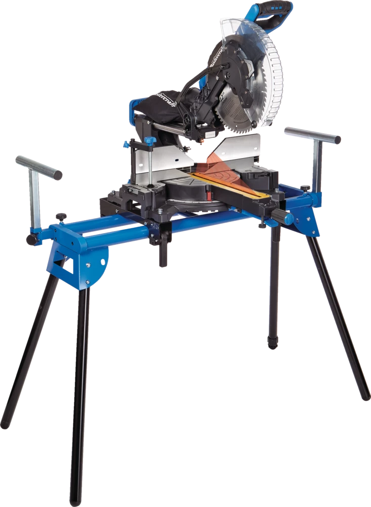 - Includes: 12″ (30.5 cm) 60T carbide-tipped blade, dust bag, (pre-installed) telescoping extension wings, work clamp and blade spanner