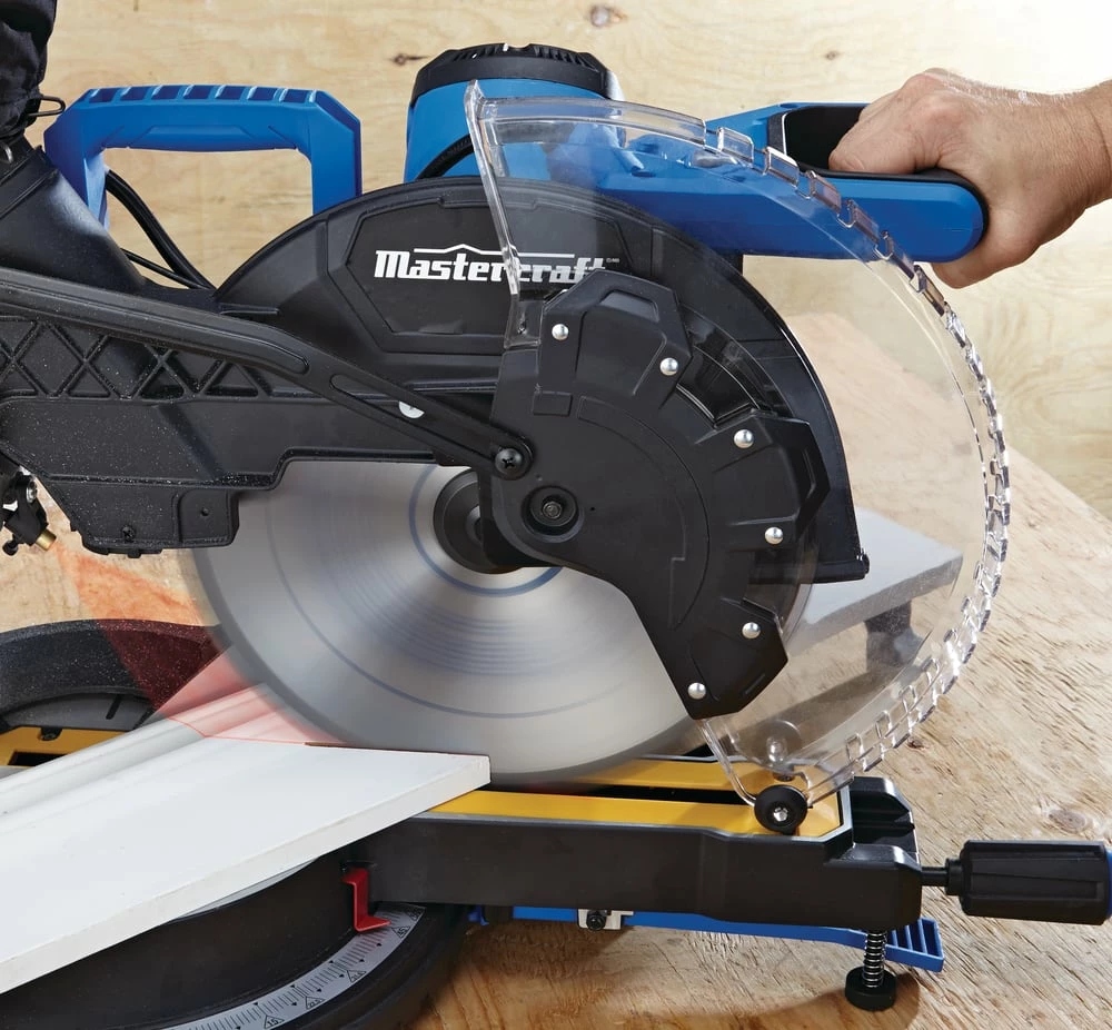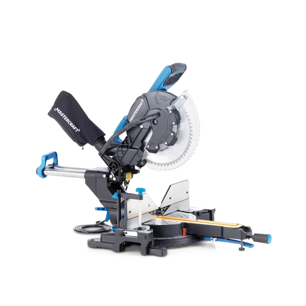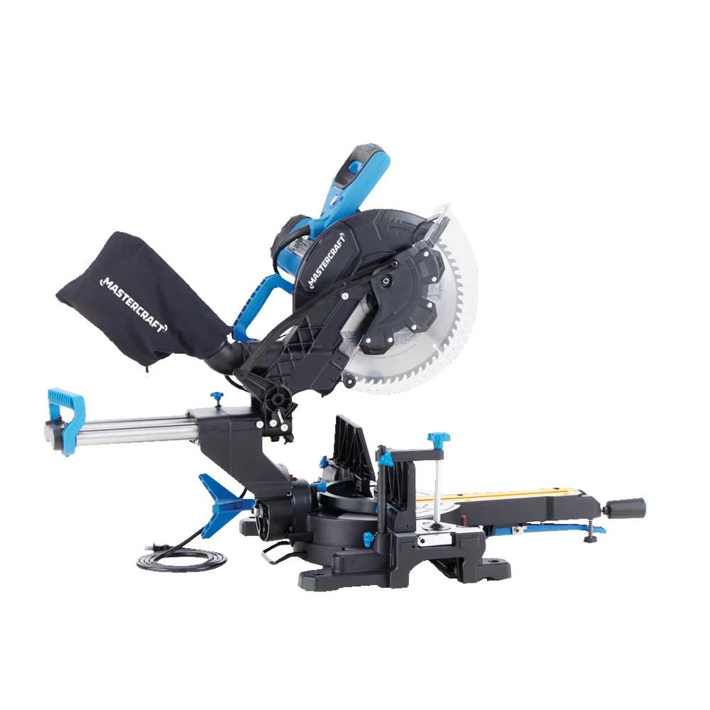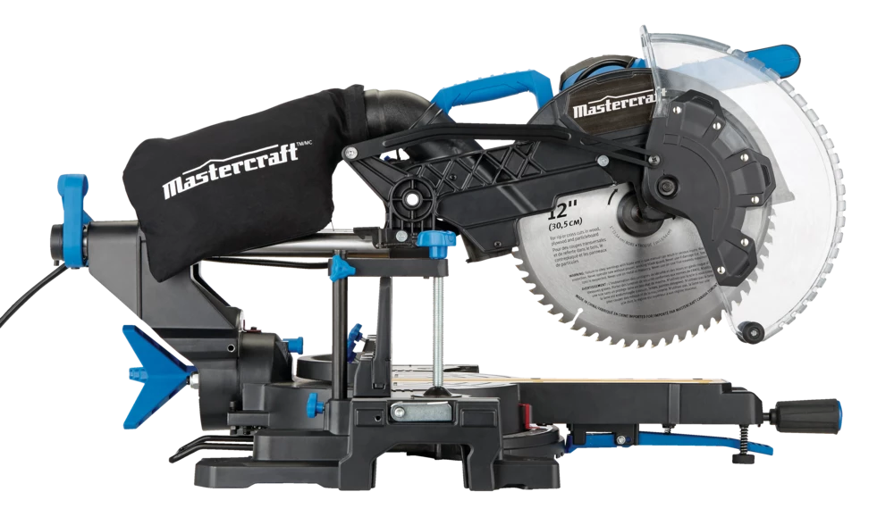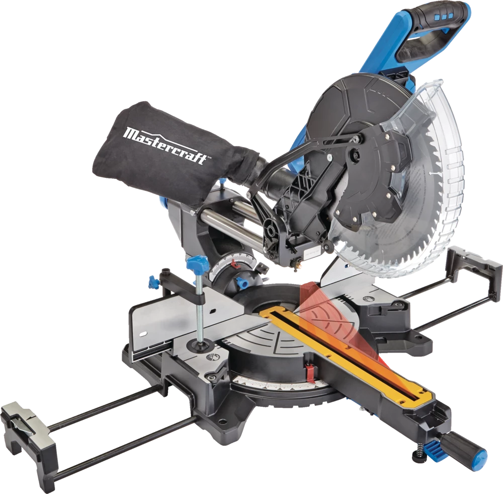 - The Mastercraft 12″Â Dual-Bevel Sliding Mitre Saw features a 15A motor and 5,500 RPM (no-load) to cut through tough materials with precision and ease