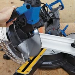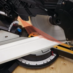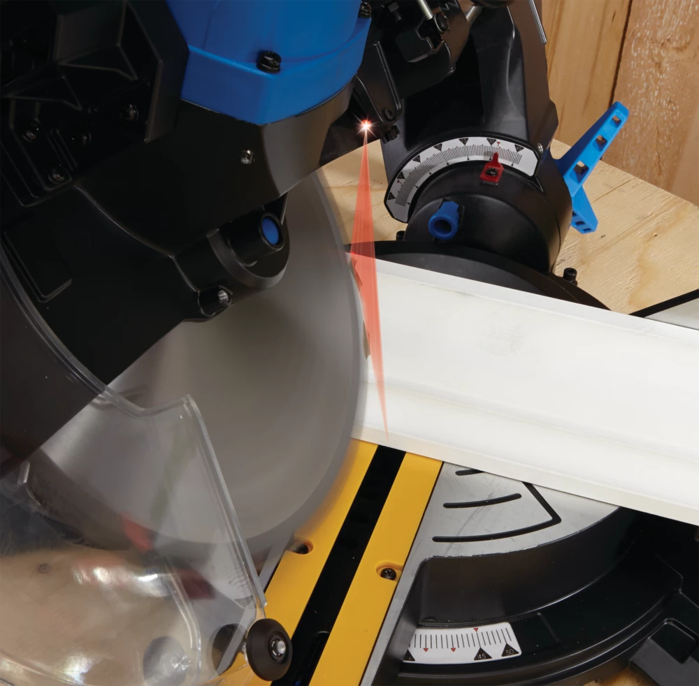 - Dual sliding rails for crosscuts up to 13″ (33 cm) in width