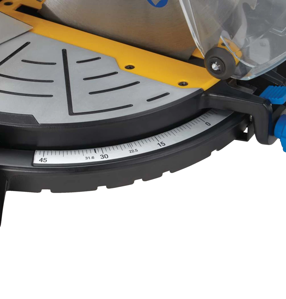 - 9 positive mitre stops at 15, 22.5, 31.6, 45° right or left and 0°