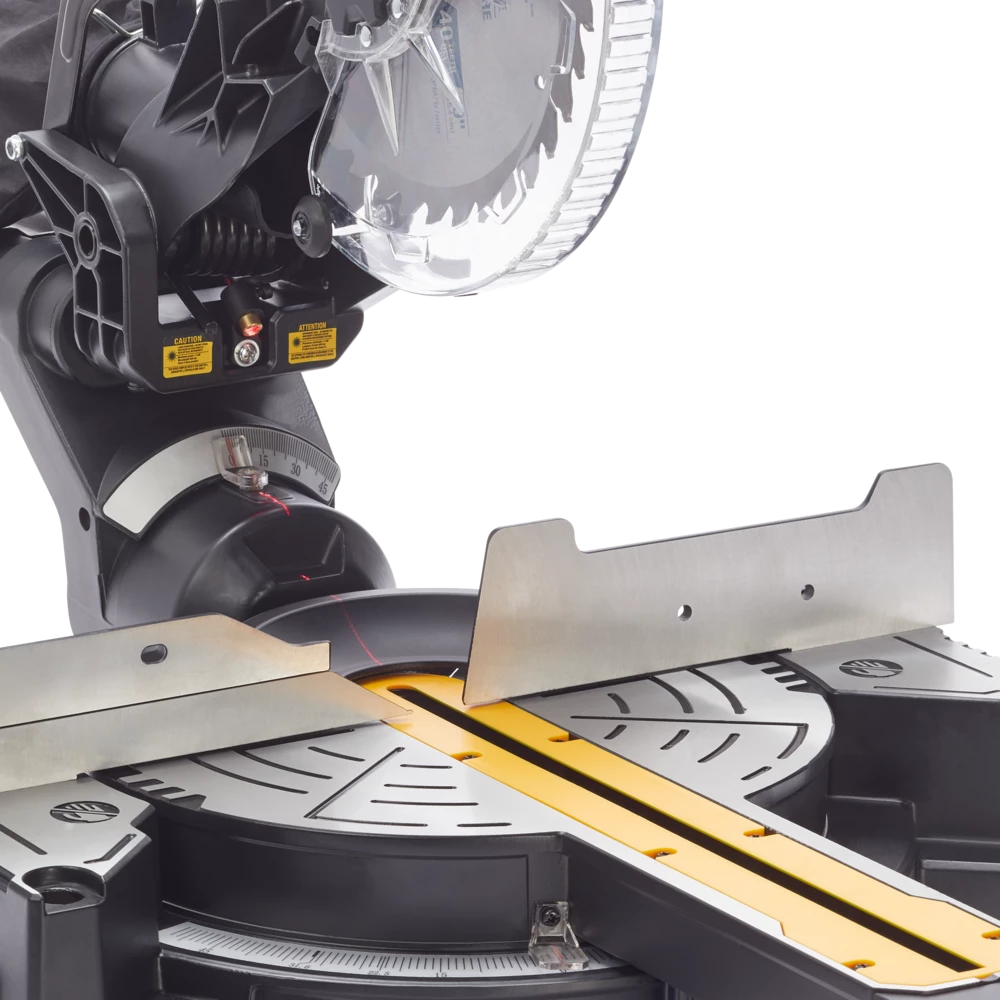 - 15A mitre saw has a 5000RPM motor, and 40T carbide tip blade