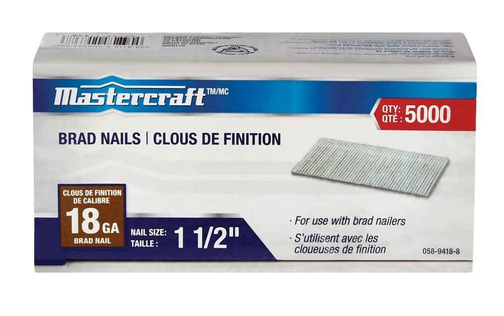 - For use in all 18 gauge brad nailers such as 3-in-1 Magazine Nail (058-8489), Mastercraft 2-in-1 Nail Gun (058-8548) and Mastercraft 2″ Brad Nailer (058-8691)