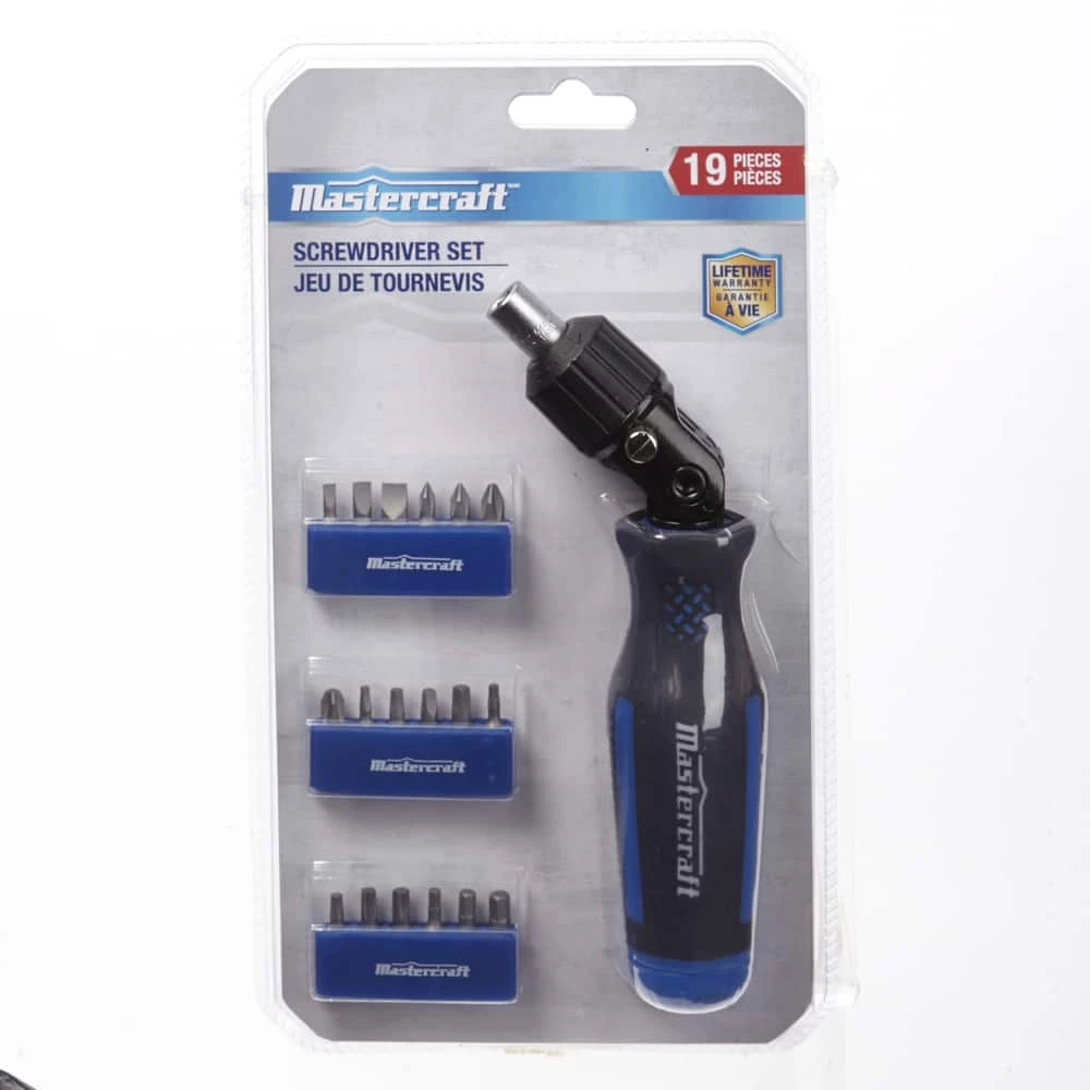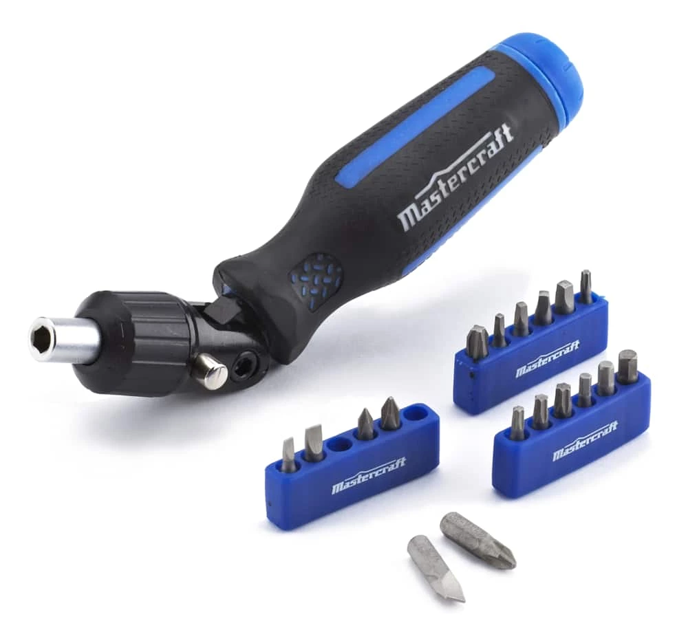 Mastercraft Ratcheting Screwdriver Set is a 5 way pivoting head, ideal for fastening screws in confined spaces