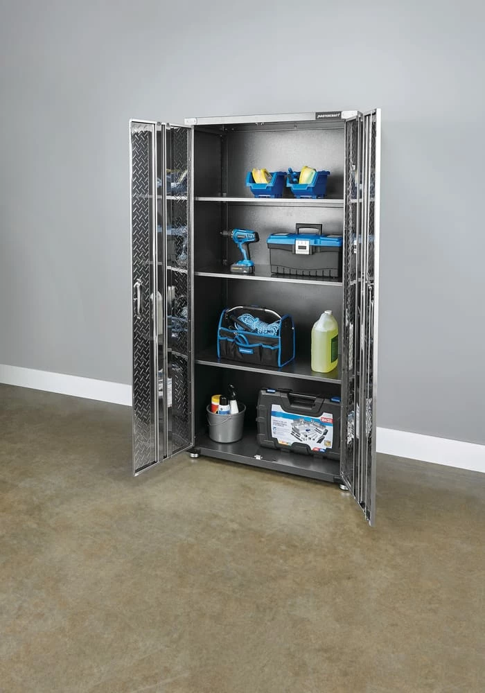 - Store workshop tools and accessories with the Mastercraft Tall Cabinet