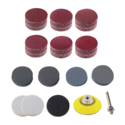 - Set includes: (2) wool buffing pads, (1) sponge pad, (1) hook and loop backing pad, (1) 1/4″ (63.5 mm) shank adapter, (10) 80-grit, (10) 100-grit, (10) 180-grit, (10) 240-grit, (10) 600-grit, (10) 800-grit, (5) 1000-grit, (5) 1200-grit, (5) 2000-grit and (5) 3000-grit sanding discs