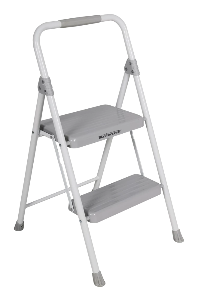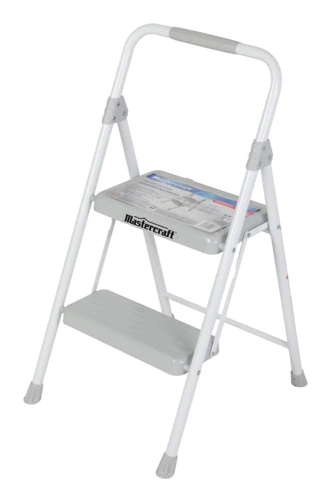 - Mastercraft 2-Step Metal Step Stool is durable and lightweight with large steps