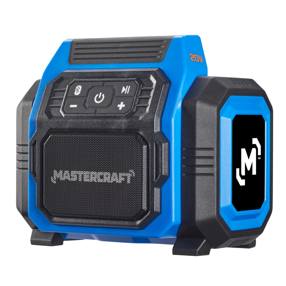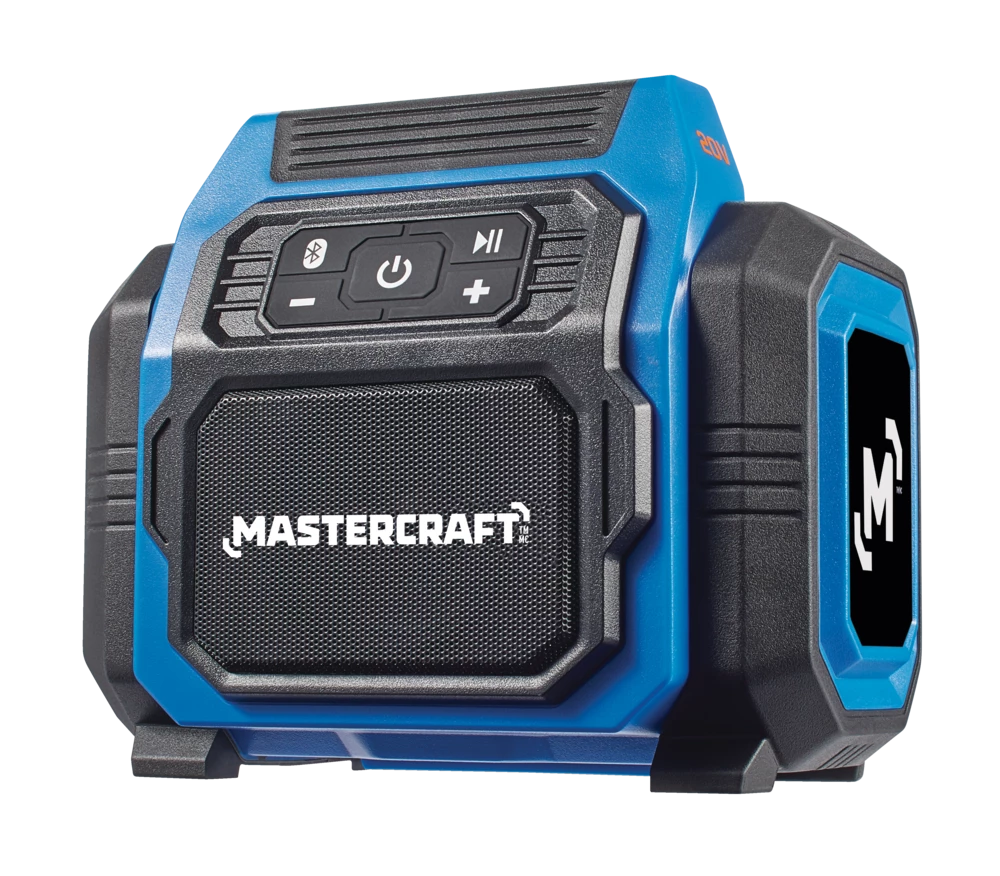 Mastercraft 20V Bluetooth Speaker is powered by PWR POD, Canada’s first truly Universal Battery System, allowing you to use the same batteries and chargers with other PWR POD products and across exclusive brands like Mastercraft, Simoniz, Woods, and MotoMaster.
