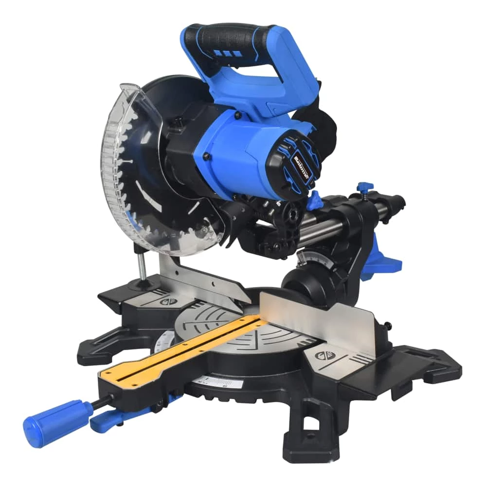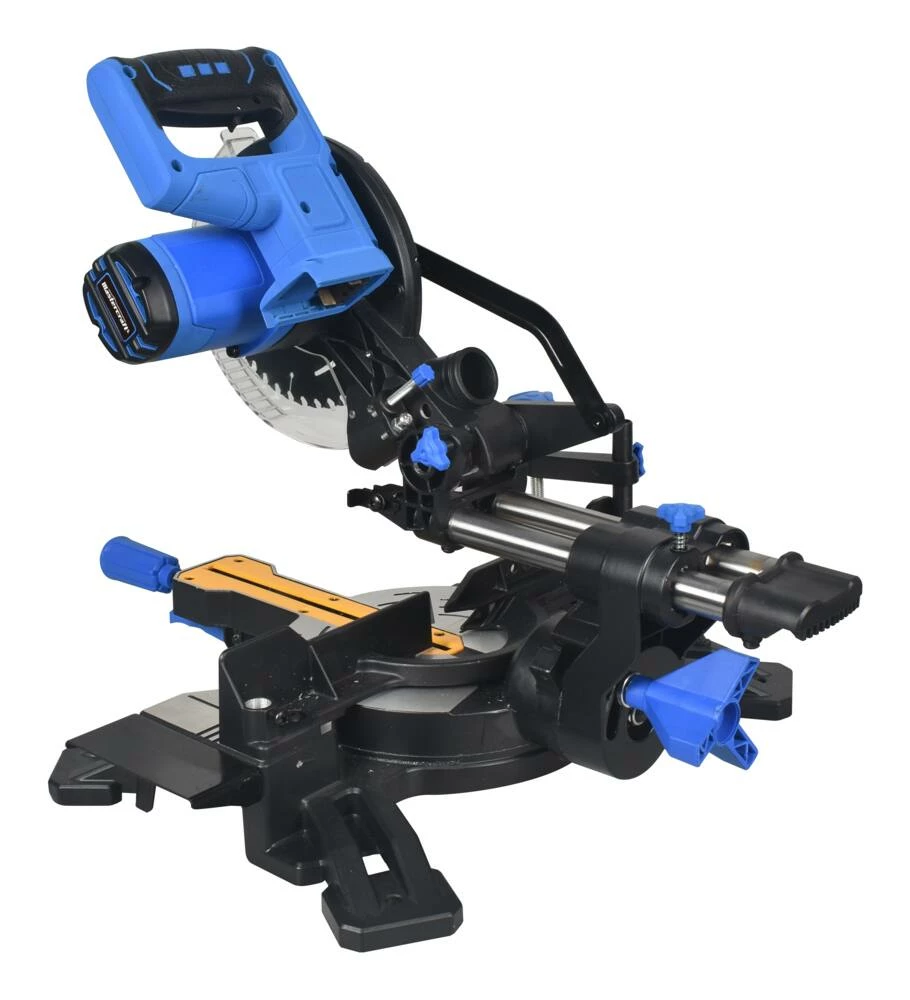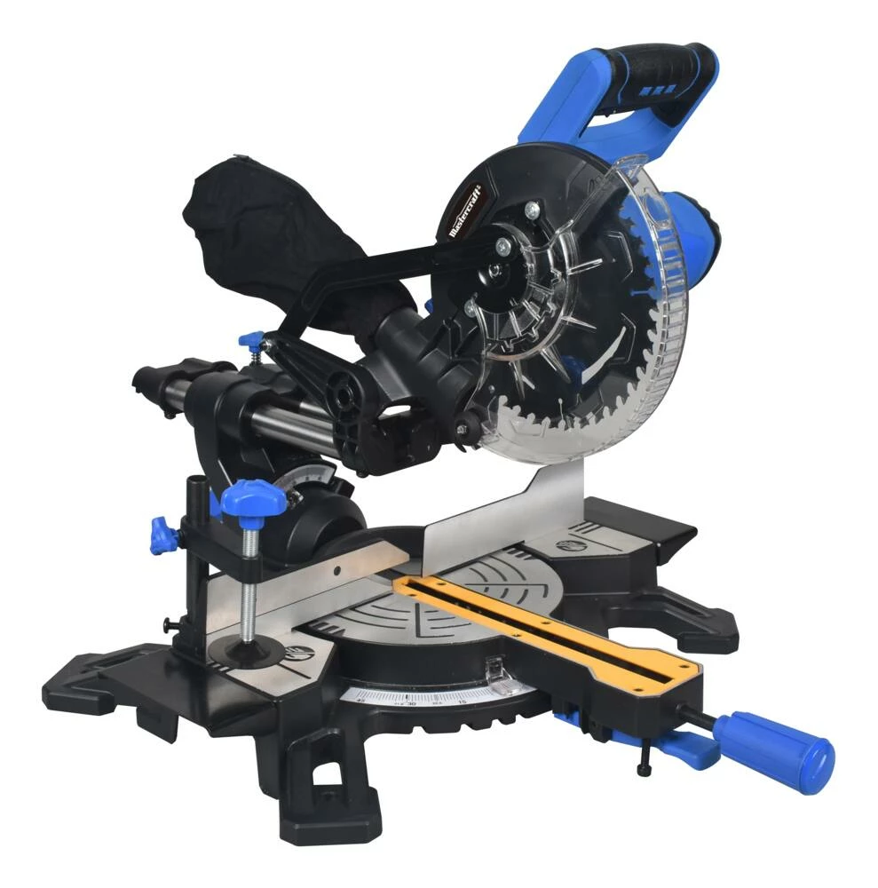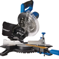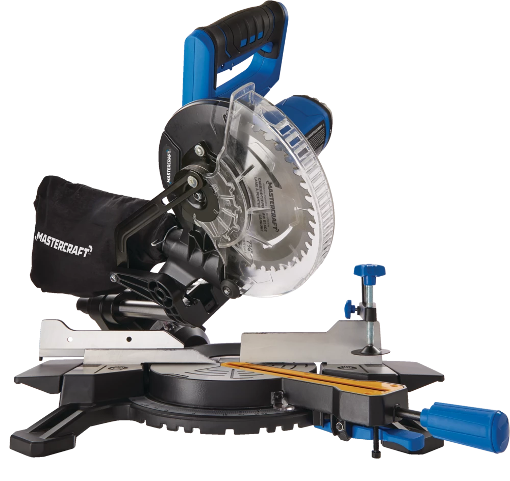 - Mastercraft Sliding Mitre Saw features dual sliding rails for increased cutting capacity; ideal for boards up to 8″ (20.3 cm) with cross cuts at 90 degrees and 6″ (15.2 cm) with cross cuts at 45 degrees