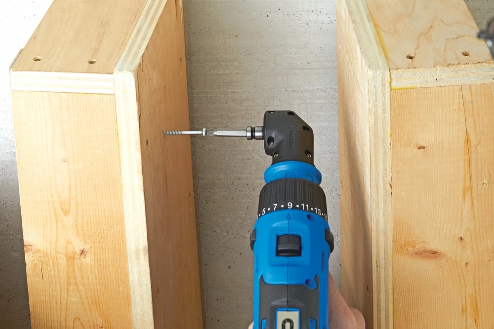 - 1/2″ single sleeve keyless removable drill chuck and 1/4″ hex drive removable right angle adapter