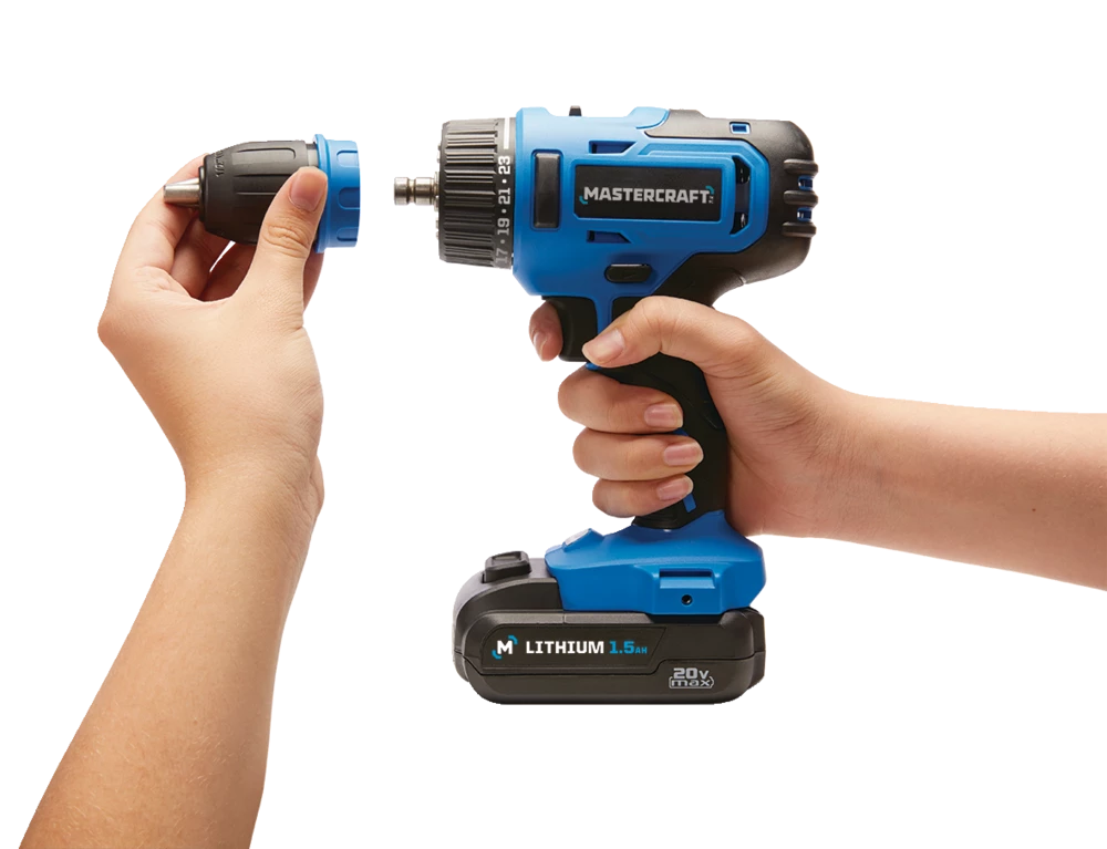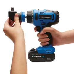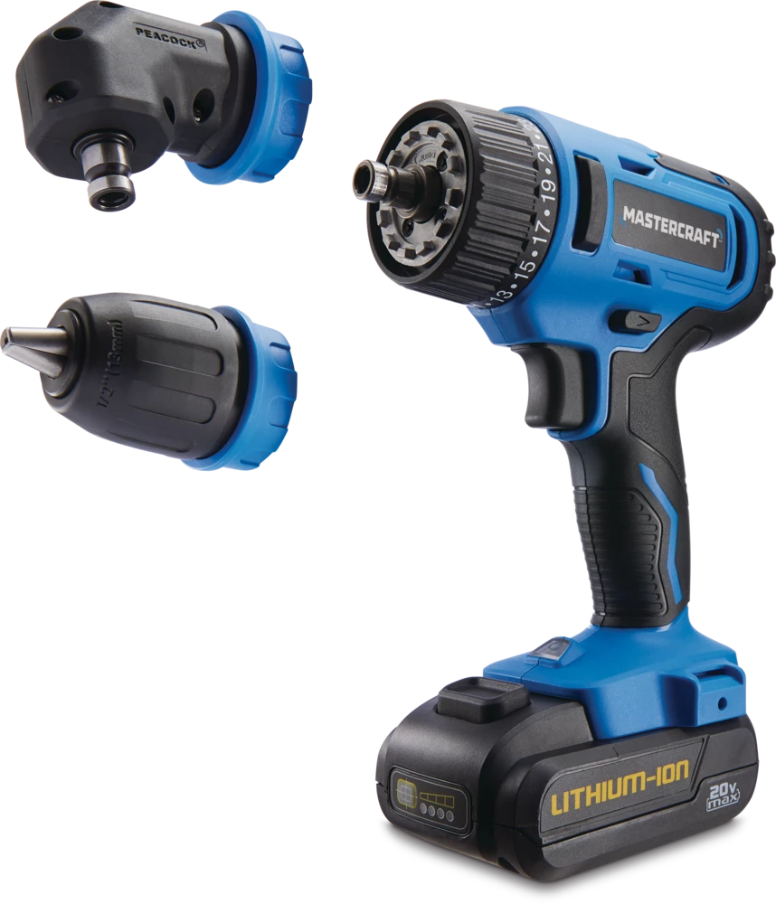 - Mastercraft 20V Max Brushed 3-in-1 Multi-Head Cordless Drill allows for quick chuck changes for multiple uses in different applications