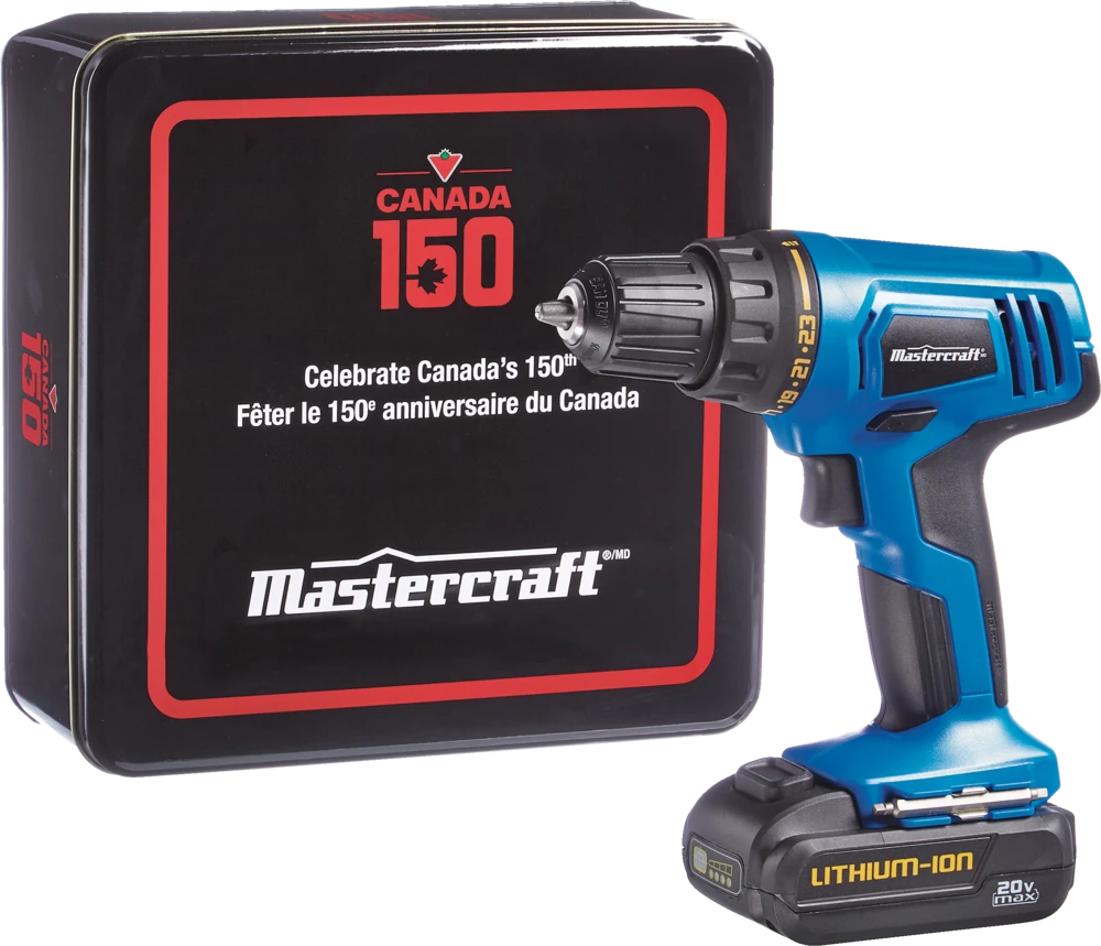 - Mastercraft 20V Max Li-Ion Cordless Drill with Canada Day Tin features a variable speed range of 0-600 RPM, making it ideal for a variety of drilling and fastening applications
