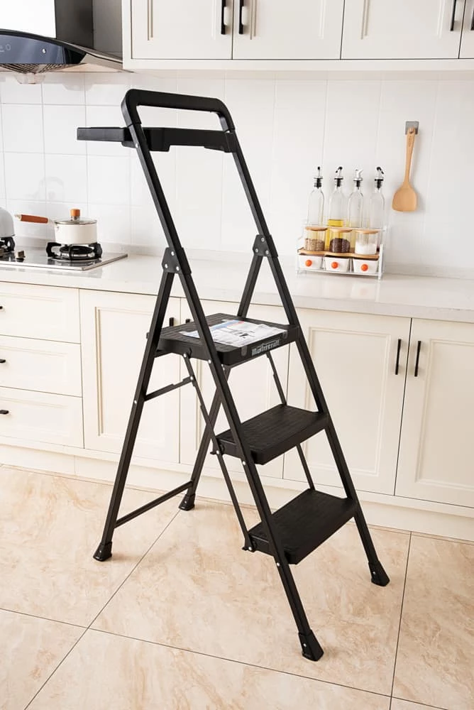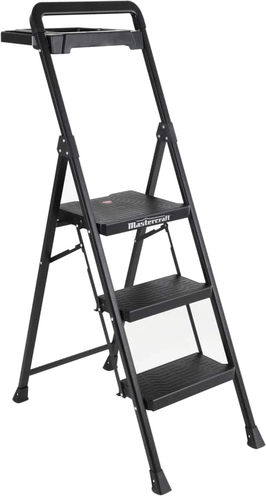 - Mastercraft 3-Step Heavy-Duty Metal/Plastic Step Stool features a durable design