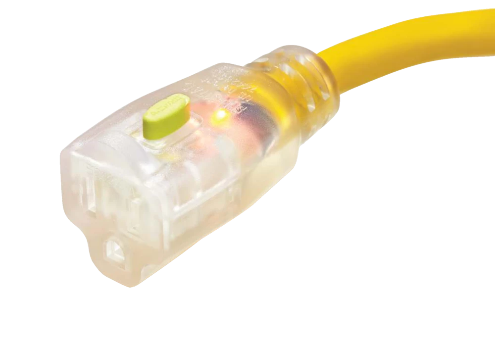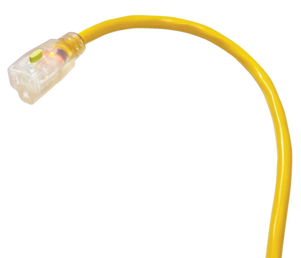 - Mastercraft 1-Outlet Outdoor Extension Cord with Lit Fan features a single lit locking end