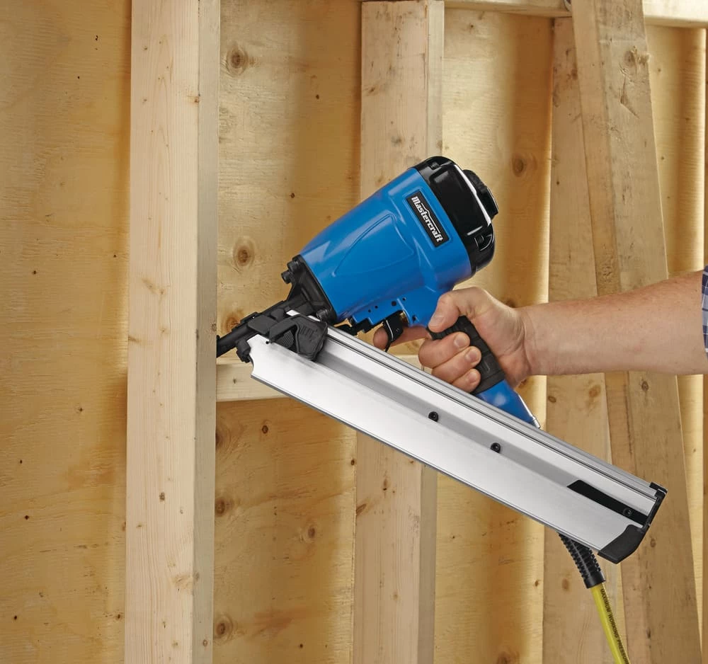 - Mastercraft 34-Degree Framing Nailer features an adjustable exhaust and depth