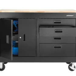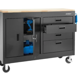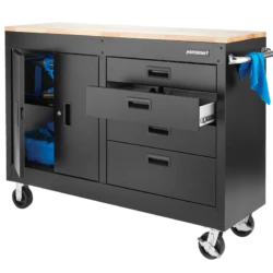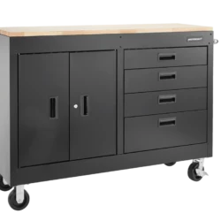 - Mastercraft 4-Drawer 2-Door Rolling Work Station provides a secure place to store and organize your tools and equipment
