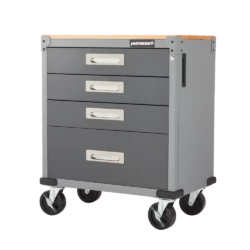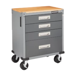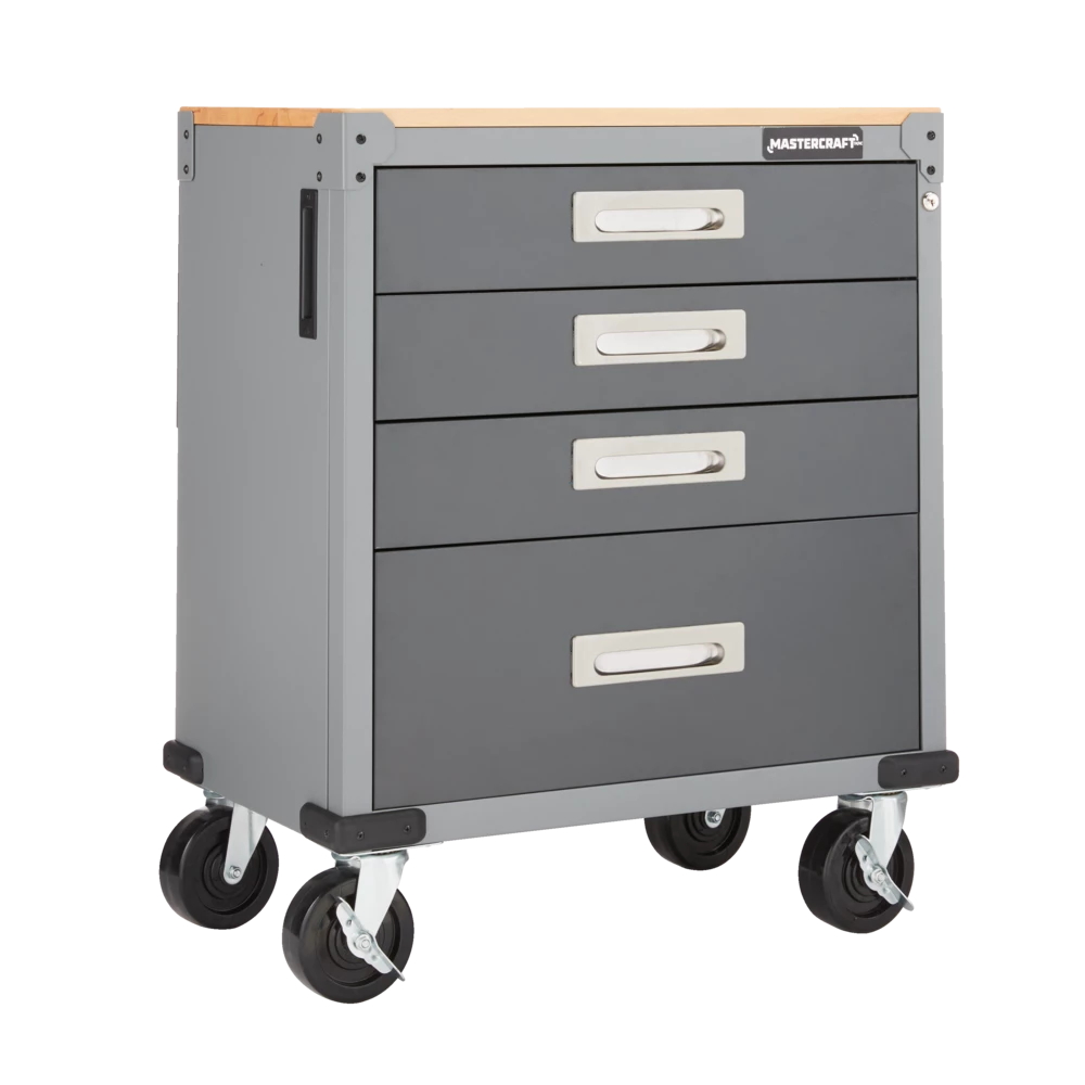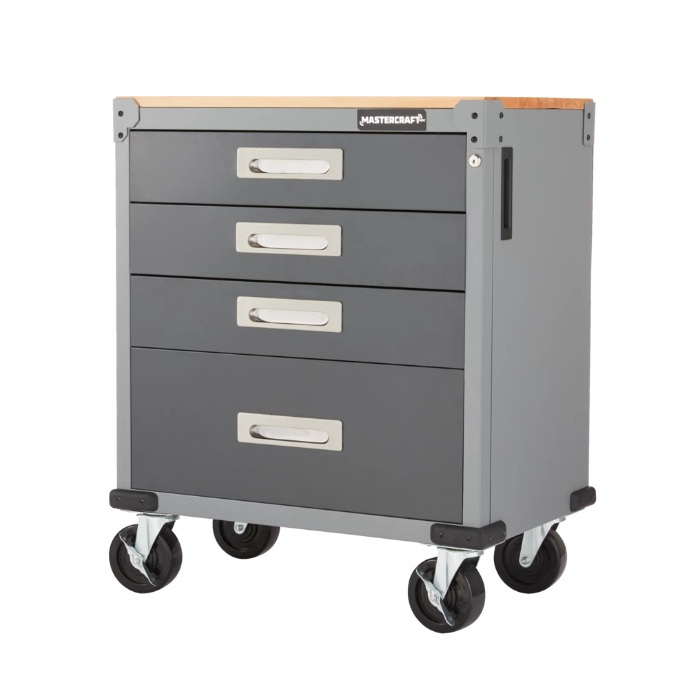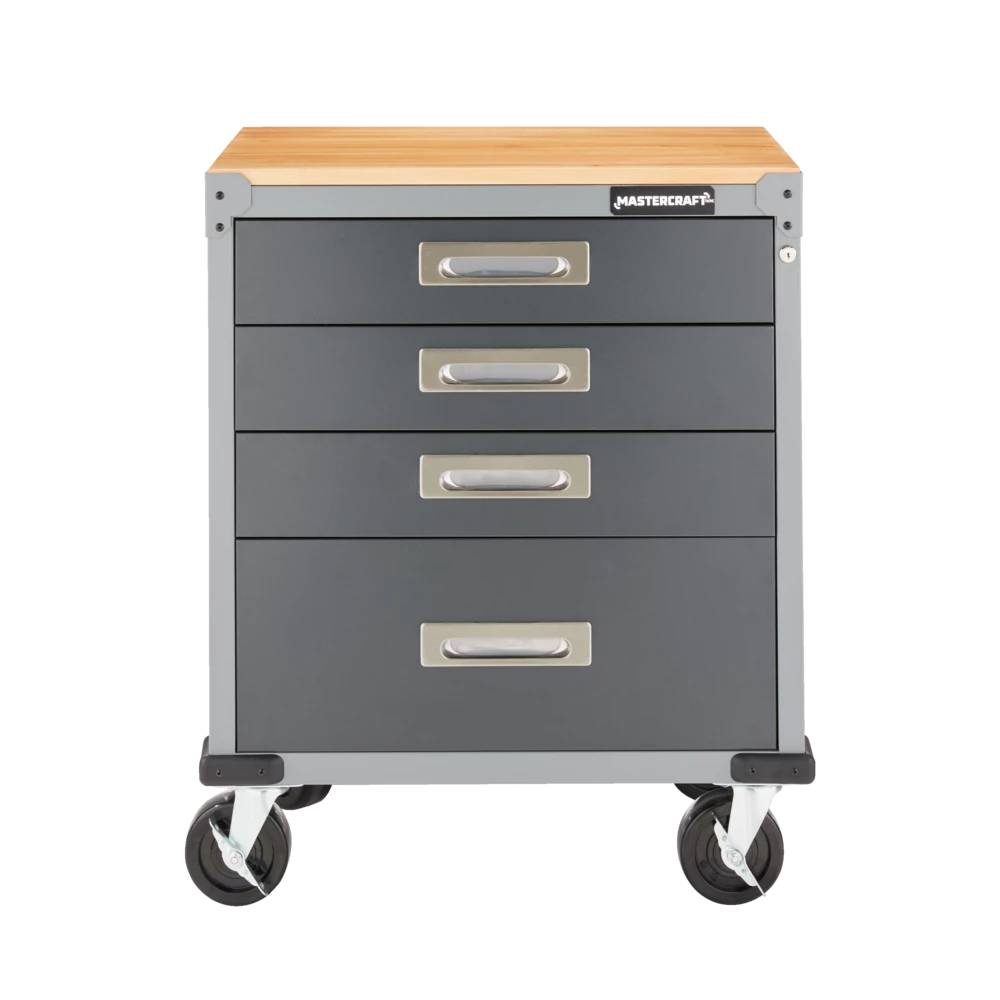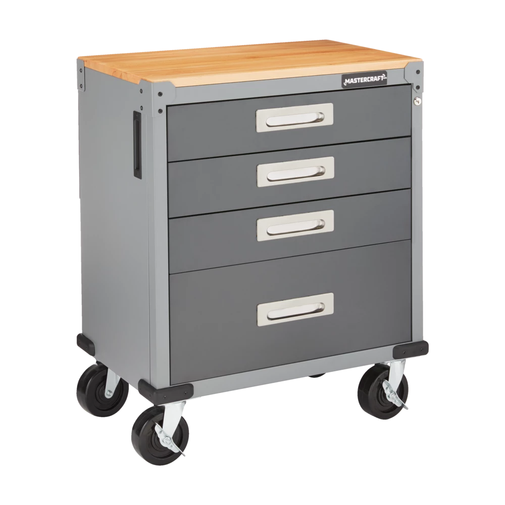 - Mastercraft 4-Drawer Base Cabinet features a wood board that’s good for placing tools during work