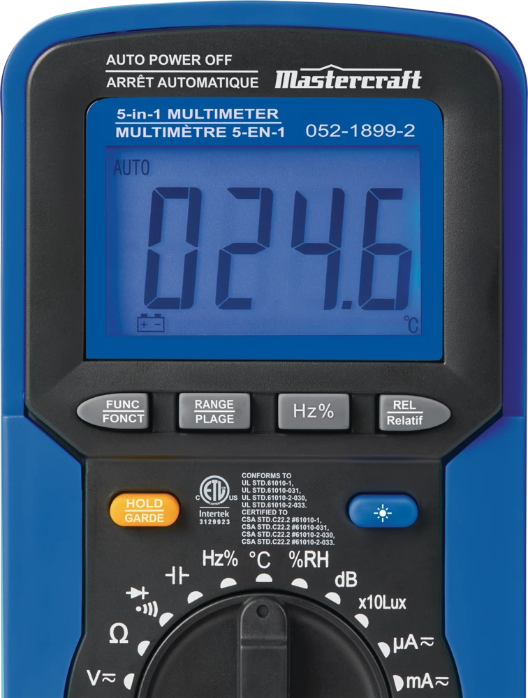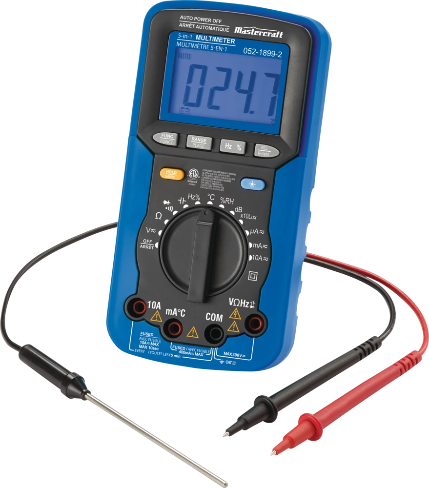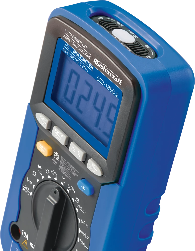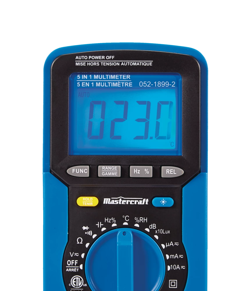 - Mastercraft 5-in-1 Digital Multimeter measures 5 types of electrical elements