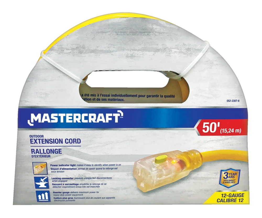 - Mastercraft Outdoor Extension Cord features PowerLiteâ„¢ indicator plug that glows when the cord has power