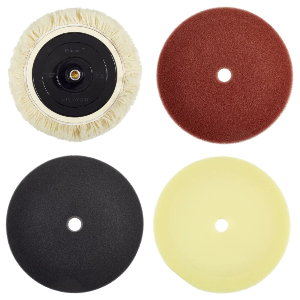 - Kit includes 9″ (22.8 cm) polishing sponges (x3), 9″ (22.8 cm) polishing bonnet, and backing pad