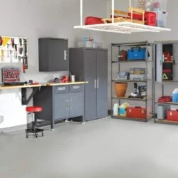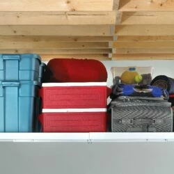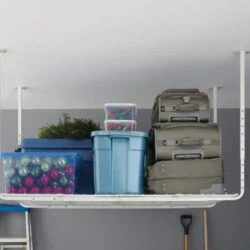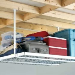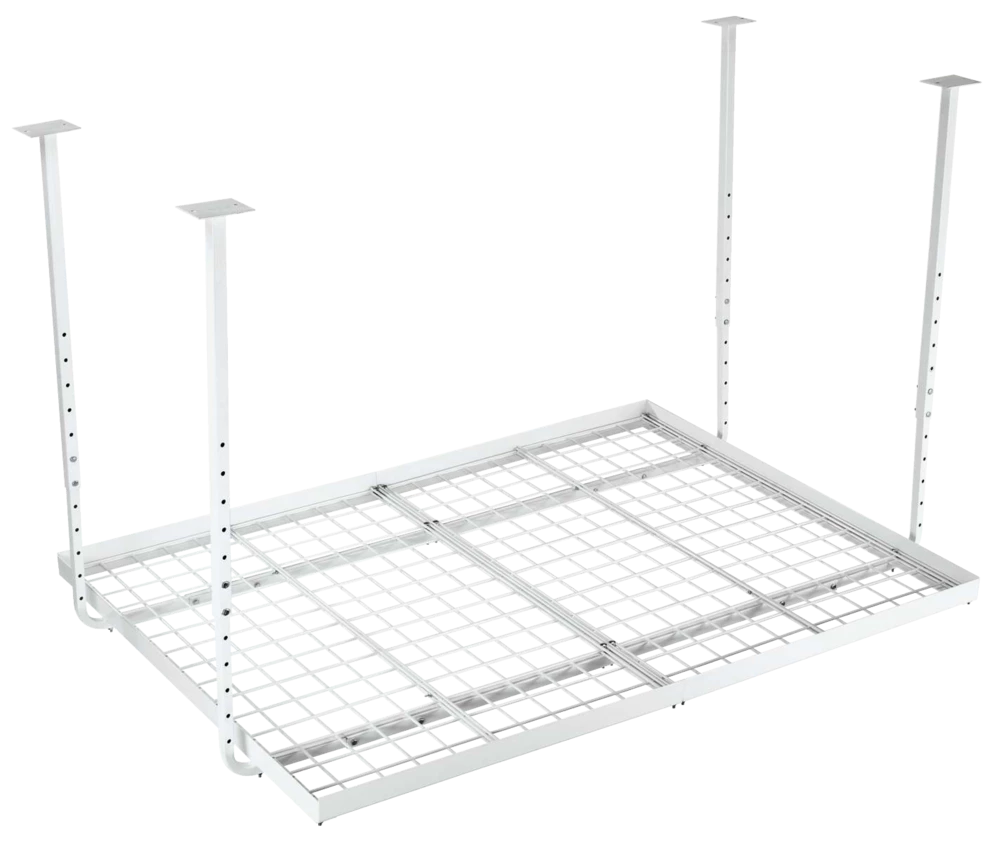 - Mastercraft Heavy Duty Ceiling Storage Unit features a white steel frame