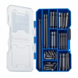 - Includes twenty-four 1″ bits, forty 2″ bits, six 4″ bits, and five 6″ bits of various types
