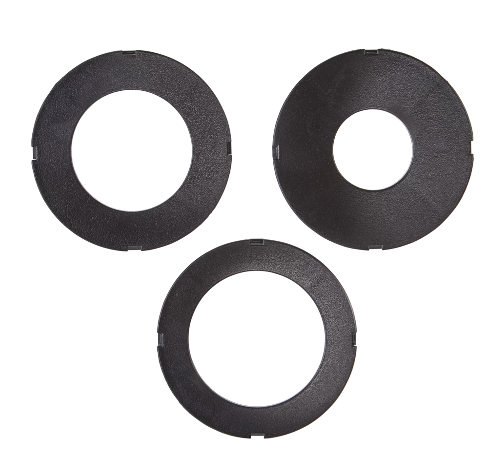 - 3 feather boards support and hold workpiece to minimize chatter and kickback