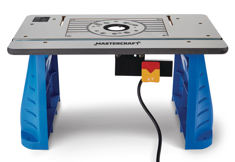 - The Mastercraft Custom Router Table features an aluminum mounting plate, predrilled for compatibility with a wide variety of routers