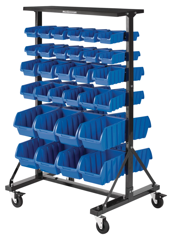 - Mastercraft 2-Sided Bin Rack is powder coated for added protection against corrosion