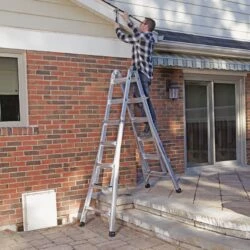 - Stairway ladder features multiple positions, and is good for uneven ground