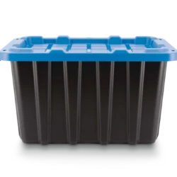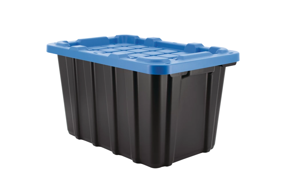 - Mastercraft Heavy Duty Storage Tote features a recessed lid with keyholes to accommodate locks and cable ties