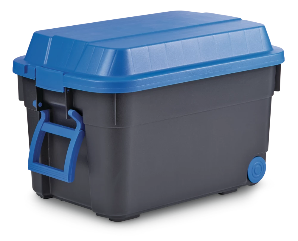 - Mastercraft Heavy Duty Tilt & Tow Storage Tote is a portable rolling trunk cargo with built-in handle and wheels for easy mobility