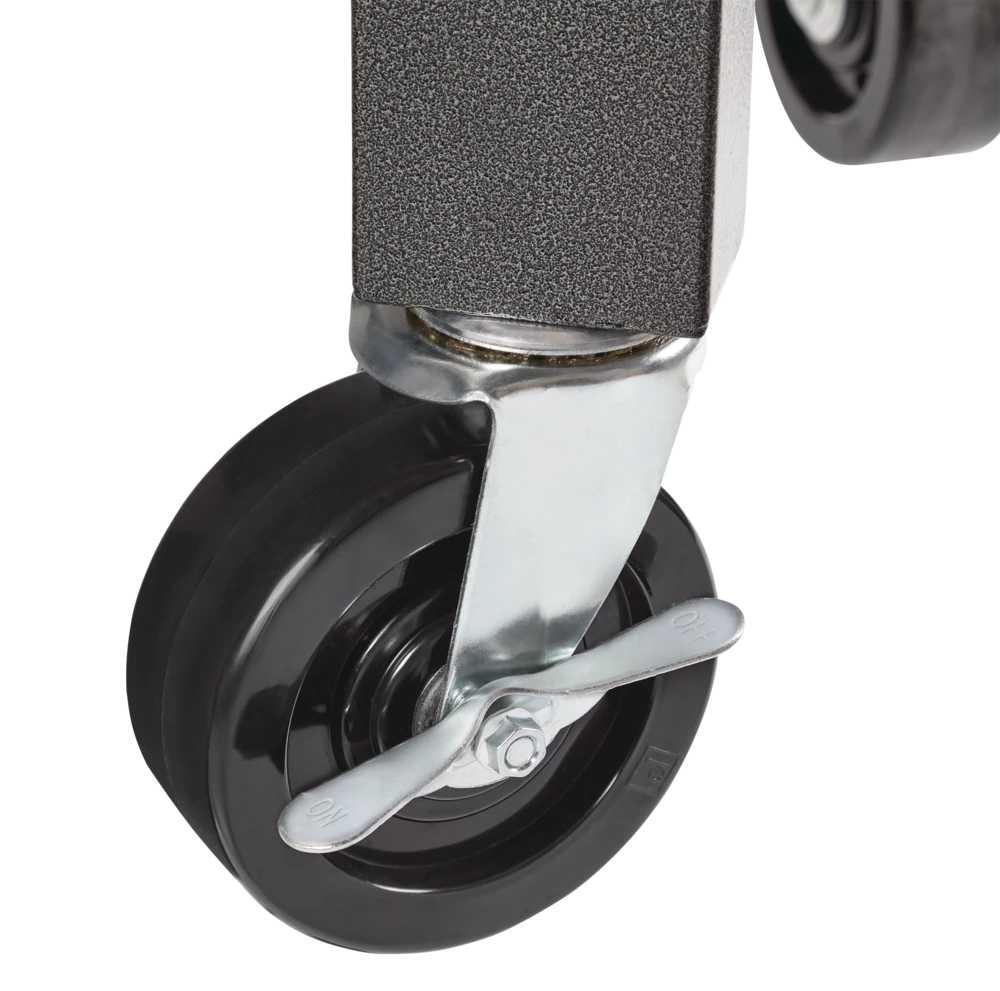 - Includes (4) 5″ x 2″ (12.7 x 5.1 cm) casters with brakes