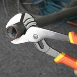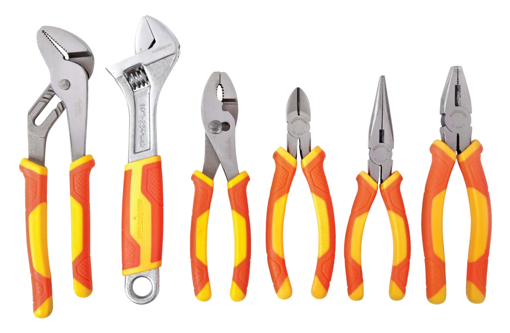 - Includes: 6″ (15.24 cm) diagonal cut, 8″ (20.32 cm) slip joint, 8″ (20.32 cm) lineman’s, 10″ (25.4 cm) adjustable wrench, 10″ (25.4 cm) tongue and groove, 6″ (15.24 cm) long nose