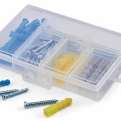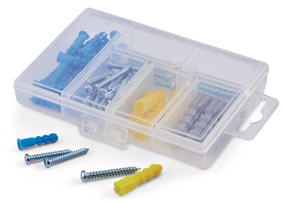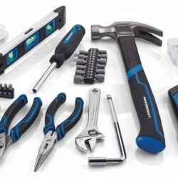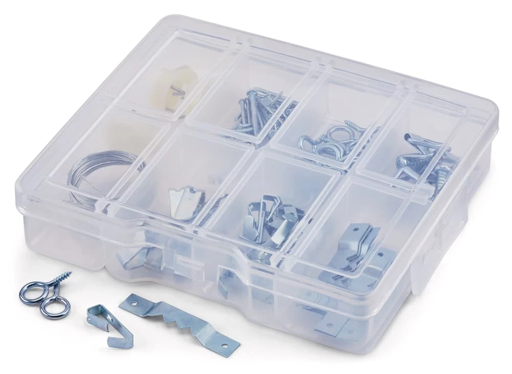 - Includes: 6″ (15.2 cm) long nose pliers, 6″ (15.2 cm) slip joint pliers, 6″ (15.2 cm) adjustable wrench, level, 12-piece CRV nut driver set (5mm, 6mm ,8mm, 10mm, 11mm, 7/32, 1/4, 9/32, 5/16, 11/32, 3/8, 7/16), magnetic L wrench, 40-piece screwdrivers bits with holder base, 16 oz fiberglass hammer, utility knife, 94-piece picture hanging kit, 56-piece wall anchor kit, magnetic bit-driver