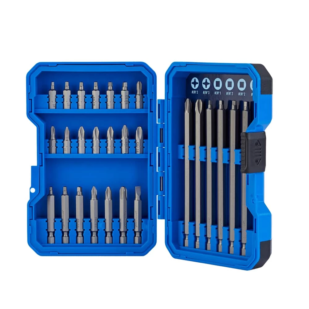 - 27 piece screwbit set include fourteen 1″, seven 2″, and six 5″ screwdriver bits