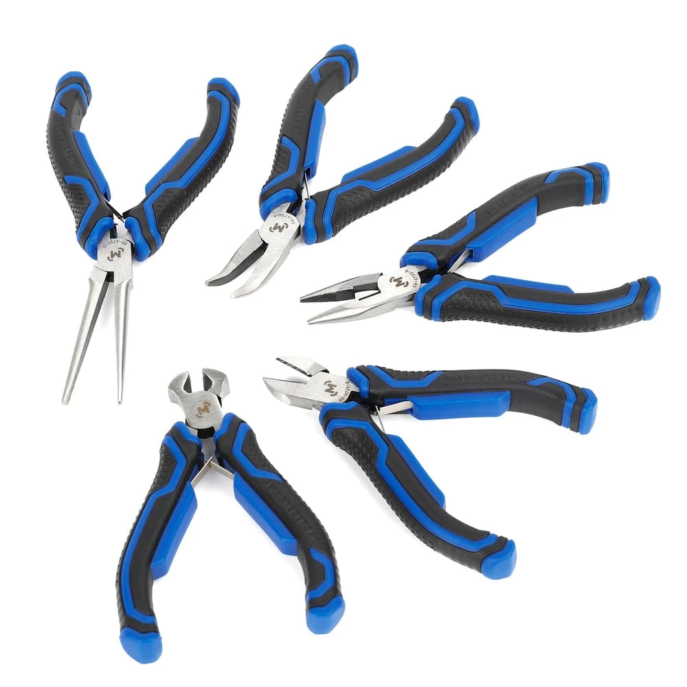 - Set includes: mini diagonal cut, mini end-cut, mini needle nose, mini long nose and mini bent nose pliers
