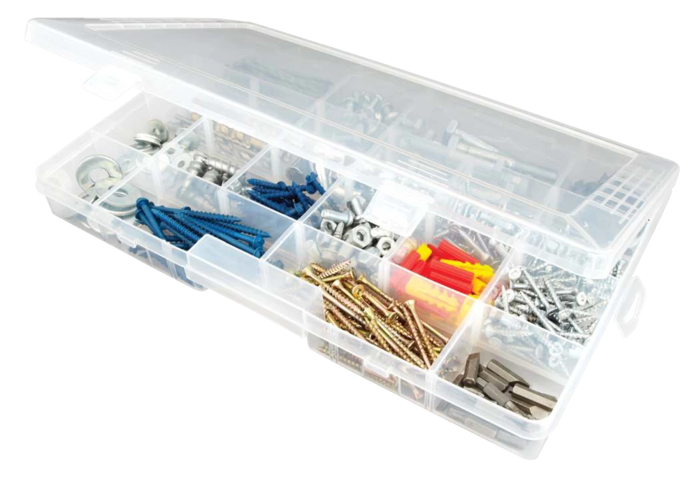 - One piece transparent parts organizer included