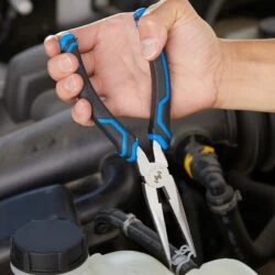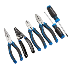 - Includes 2 screwdrivers Ph 2 x 4″ (5 x 10 cm) and slot 3/16 x 4″ (0.5 x 10 cm), 8″ (20.3 cm) linesman plier, 8″ (20.3 cm) long nose pliers, 8″ (20.3 cm) diagonal cutting pliers and 7″ (18 cm) wire stripper