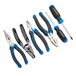 - Includes 2 screwdrivers Ph 2 x 4″ (5 x 10 cm) and slot 3/16 x 4″ (0.5 x 10 cm), 8″ (20.3 cm) linesman plier, 8″ (20.3 cm) long nose pliers, 8″ (20.3 cm) diagonal cutting pliers and 7″ (18 cm) wire stripper