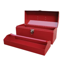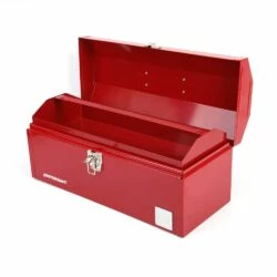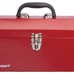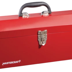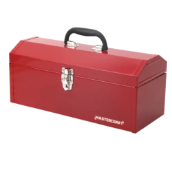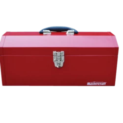 - Mastercraft Red Metal Toolbox features a heavy plated latch designed to withstand weather and weight