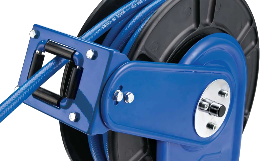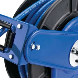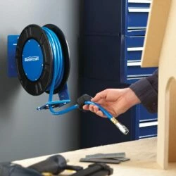 No tripping over your air hose ever again. Simply mount this reel right up to your wall, workbench or compressor dolly. It supplies a whopping 50’ of durable 3/8” x 2” PVC lead hose to your air tools, which can be retracted automatically. After all, a clean and tidy workplace is a productive one.