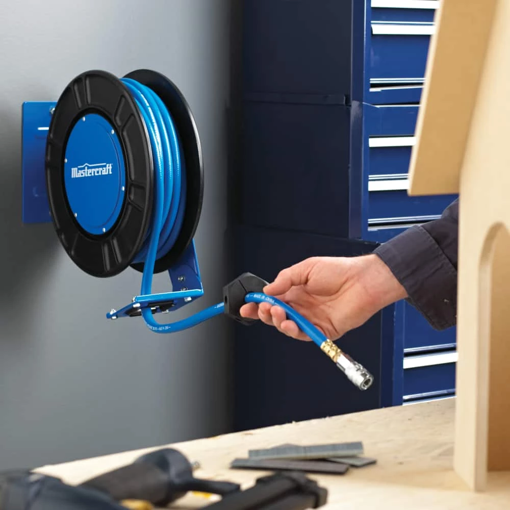 - Mastercraft PVC Air Hose and Reel with a 3/8″ x 2′ PVC lead hose allows for easier utilization