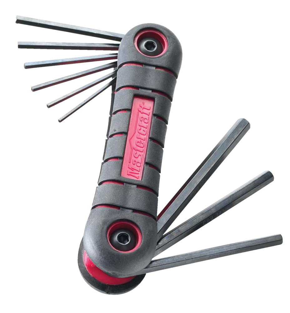 Mastercraft SAE 9 Piece Folding Comfort Grip Hex Key Set: 5/64″, 3/32″, 7/64″, 1/8″, 9/64″, 5/32″, 3/16″, 7/32″, 1/4″
