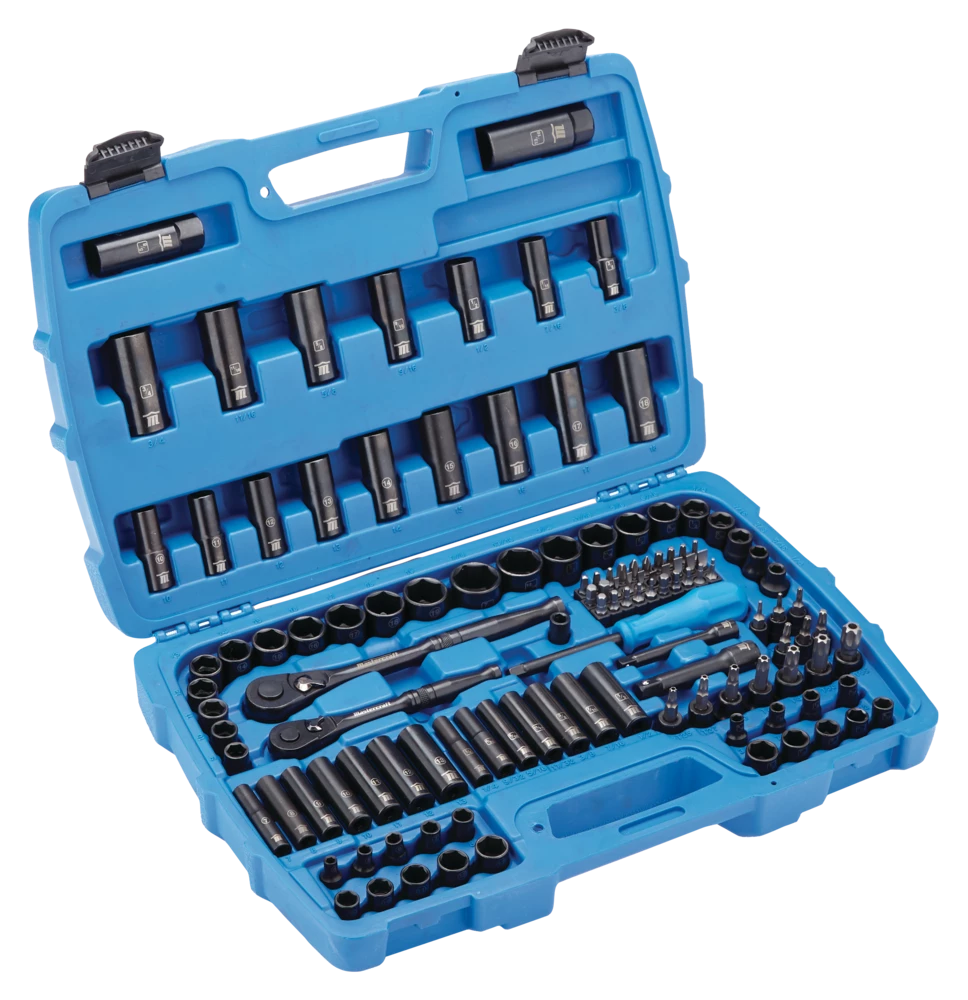 - Pieces Included: Case, Deep Sockets, Extension Bars, Adapters, Driver Bits