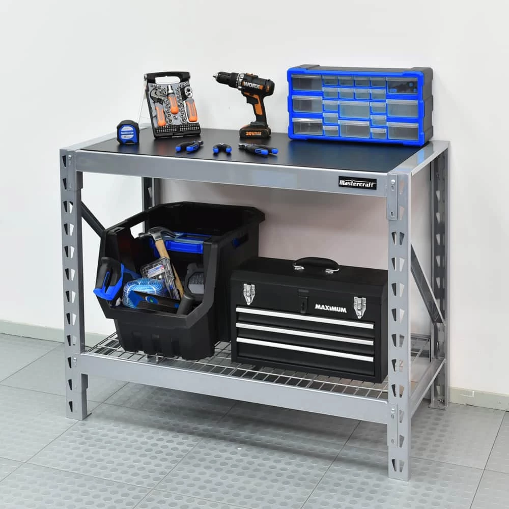 - Mastercraft Folding Work Table is ideal for storing heavy loads in the office, home, garage or warehouse